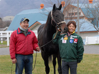 千代田牧場がお世話になっているオーナーと一緒に、後藤浩輝騎手が来場されました。