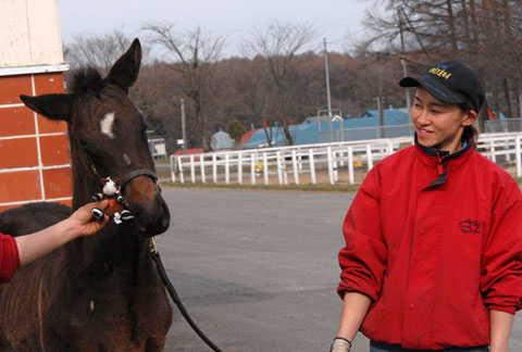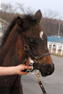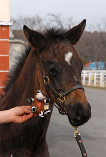 | この馬のぬいぐるみは写真撮影時の必須アイテム。 お腹を押すと「ヒヒーン」と鳴きます。 これで馬の注意をカメラの方に引きつけます。 耳の向きがピンとそろったりりしい写真が撮れます。 |