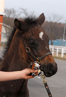 なのにコパノオマモリ2009君, 鳴き馬にまったく反応せず! (耳の向きがバラバラですね) 「フッ,そんな子供だまし, オレには通用しないぜ」 |