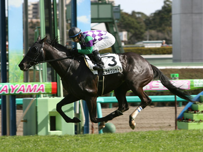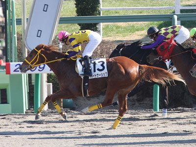 ![]() 3戦連続3着のあと、6馬身差の圧勝! |